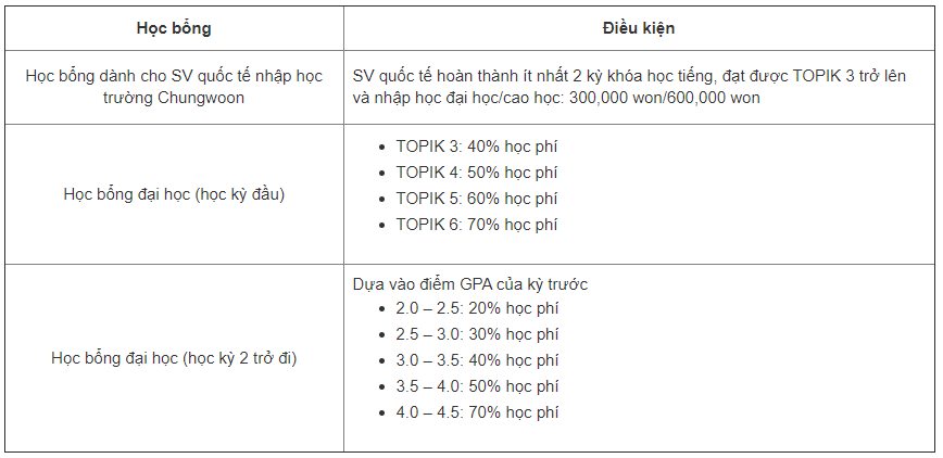 I. TRƯỜNG ĐẠI HỌC CHUNGWOON HÀN QUỐC – 청운대학교