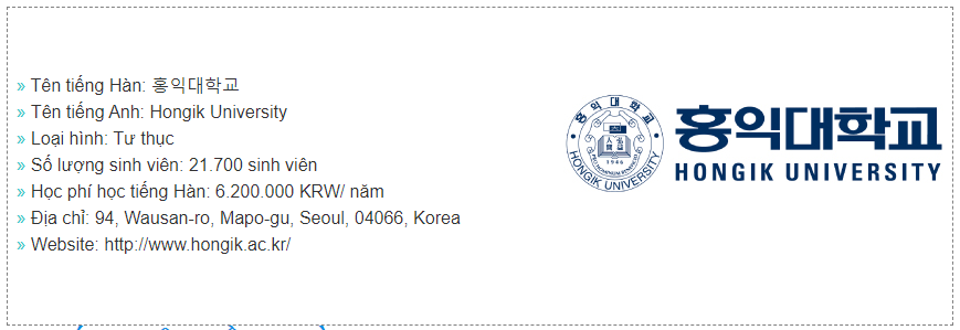 I. TRƯỜNG ĐẠI HỌC HONGIK HÀN QUỐC – 홍익대학교
