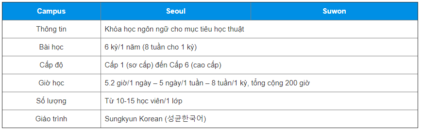 III. CHƯƠNG TRÌNH KHÓA TIẾNG TẠI TRƯỜNG ĐẠI HỌC SUNGKYUNKWAN