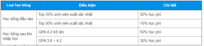 - Chương trình đào tạo bằng tiếng Anh A: IELTS 6.5 hoặc TOEFL iBT 90