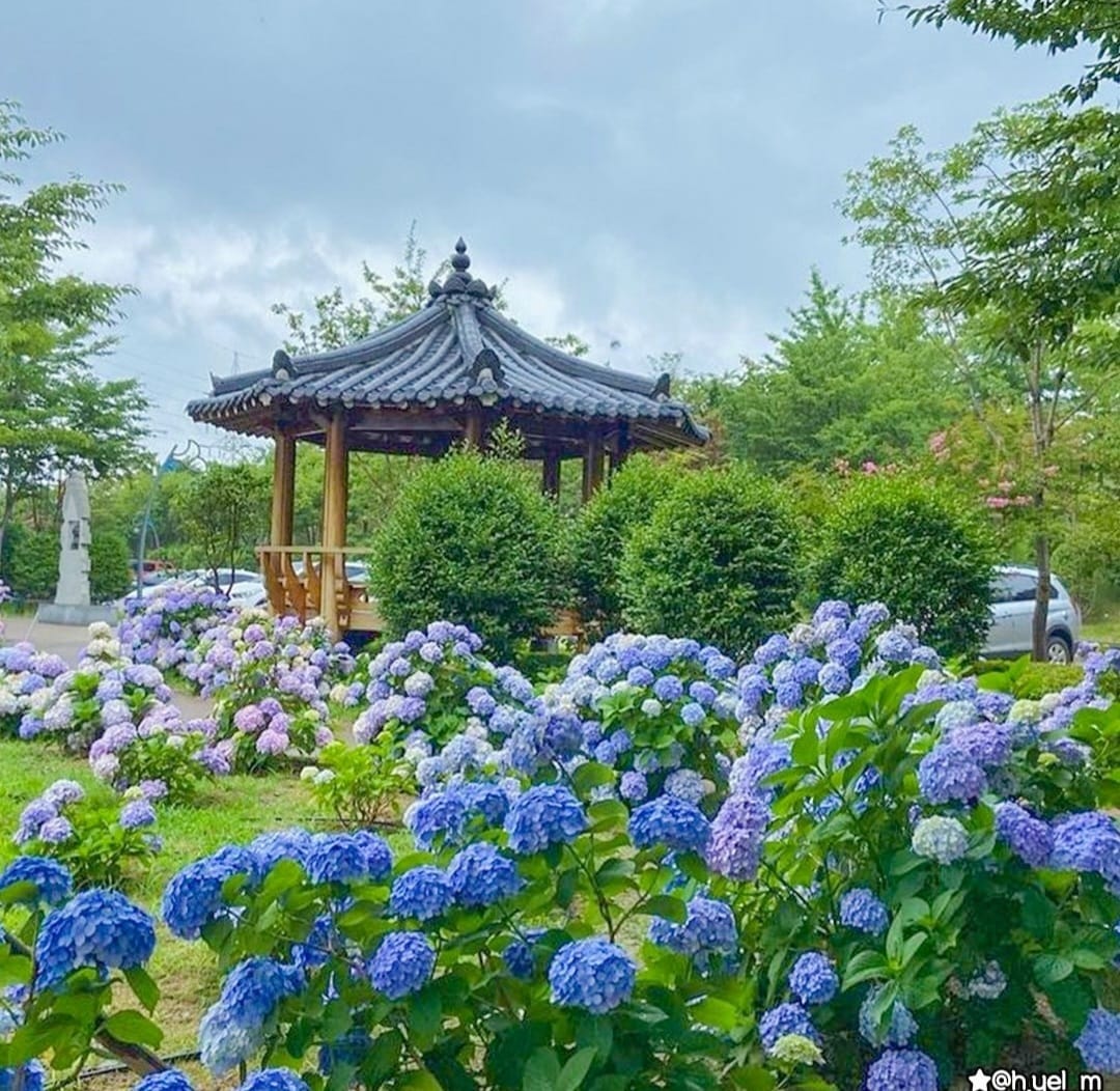 Hoa cẩm tú cầu tại Ulsan đang bắt đầu nở,hiện tại thì mới nở ít chưa đẹp lắm,dự kiến cuối tuần tới là đẹp lắm nha mọi người.