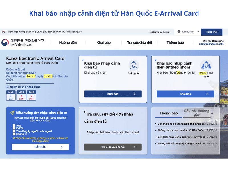 - Truy cập vào địa chỉ www.e-Arrivalcard.go.kr từ điện thoại có kết nối mạng