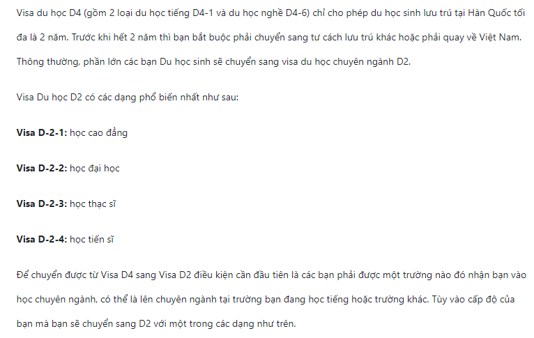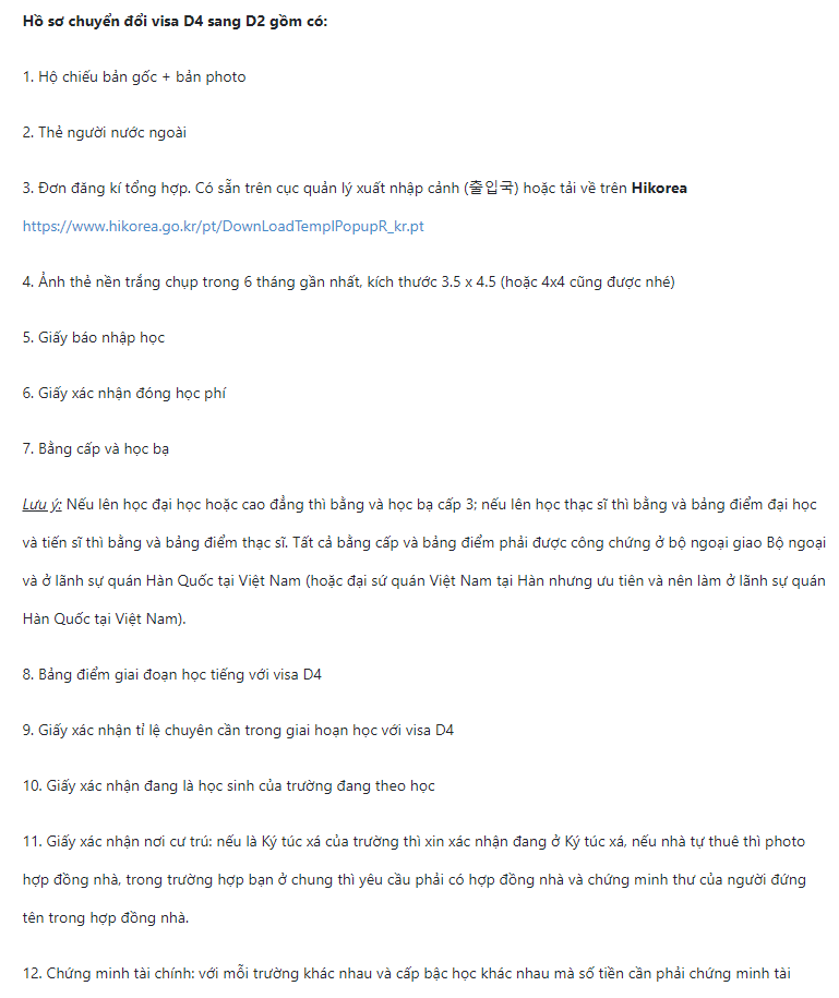 HƯỚNG DẪN CHUYỂN ĐỔI VISA D4 (HỌC TIẾNG) SANG VISA D2 (CHUYÊN NGÀNH)