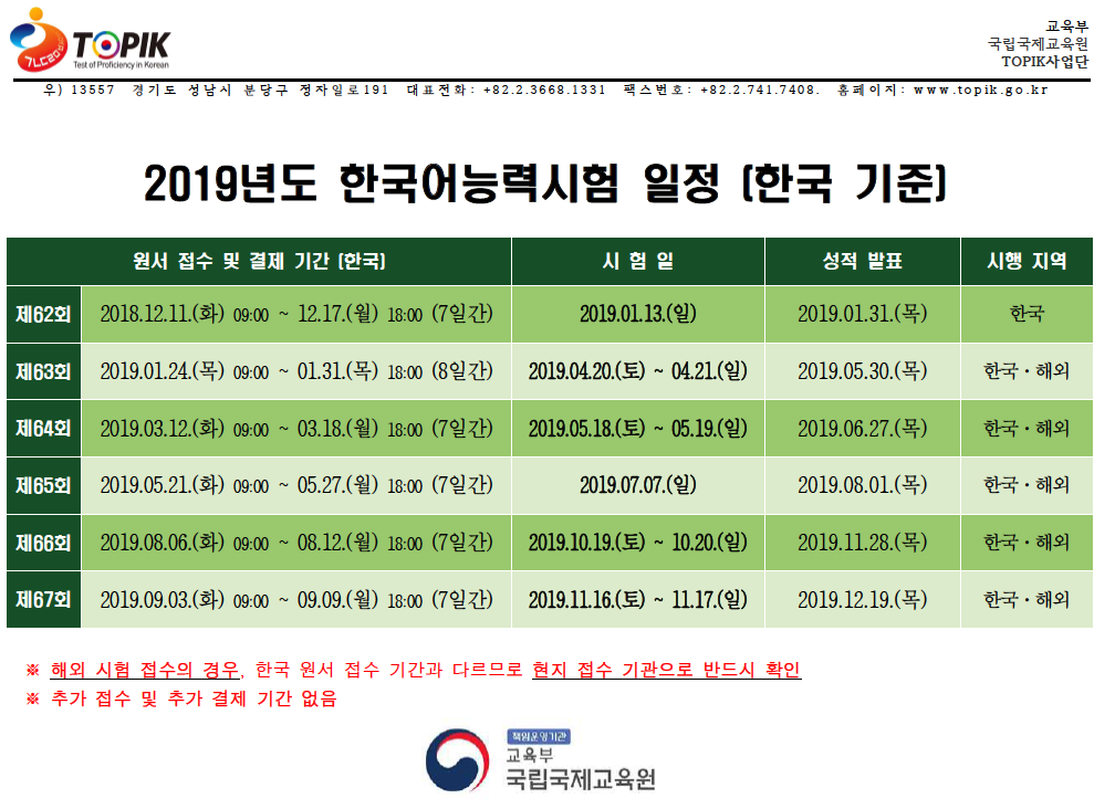 Sau đây là thông báo cụ thể về việc đăng ký kỳ thi TOPIK lần thứ 63:
